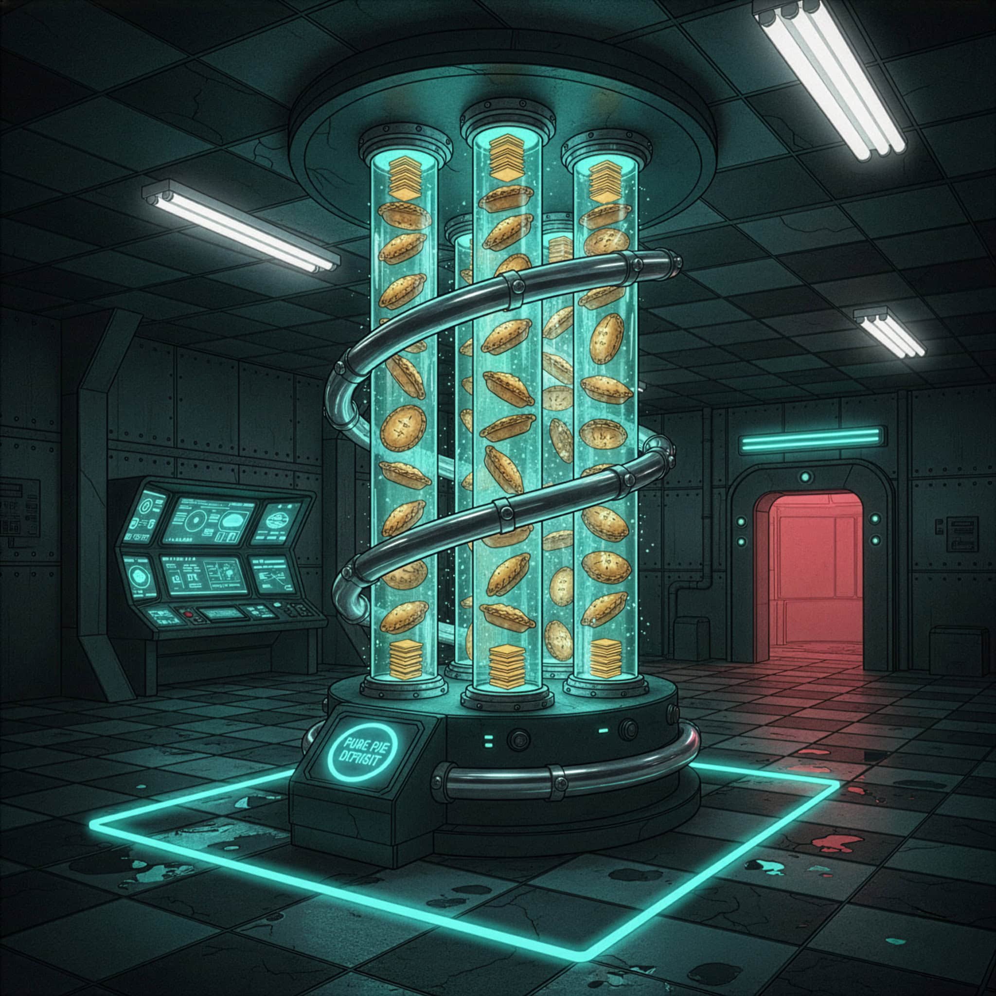 The primary production line where raw ingredients are processed into Auntie Atom's signature pies. The tubes operate at temperatures that would be considered unsafe by any regulatory body — fortunately, no regulatory body has jurisdiction over the Null Plains.